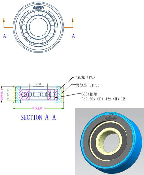 1. 导向轮采用:表层为聚氨酯、芯层为玻璃纤维增强尼龙的两种材